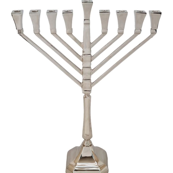 חנוכיית פרימיום עשויה בראס (פליז) איכותי, בעיצוב אלגנטי ומרשים. החנוכייה מגיעה בגימור צבע כסף מט אלגנטי, עם קנים אלכסוניים בסגנון חב״ד, המקנים לה מראה מסורתי אך עדכני ויוקרתי. החומר – בראס מלא – מעניק יציבות, עמידות ושמירה על מראה מהודר לאורך שנים. מתאימה לנרות שעווה / שמן (לפי הדגם שלך), ומוסיפה יופי והדר לכל בית יהודי. מידות: גובה: 70 ס״מ רוחב: 55 ס״מ עומק: 19 ס״מ חנוכייה יציבה, כבדה, עמידה ומשדרת נוכחות — מושלמת לבית יהודי, בית כנסת או כמתנה יוקרתית לחג.