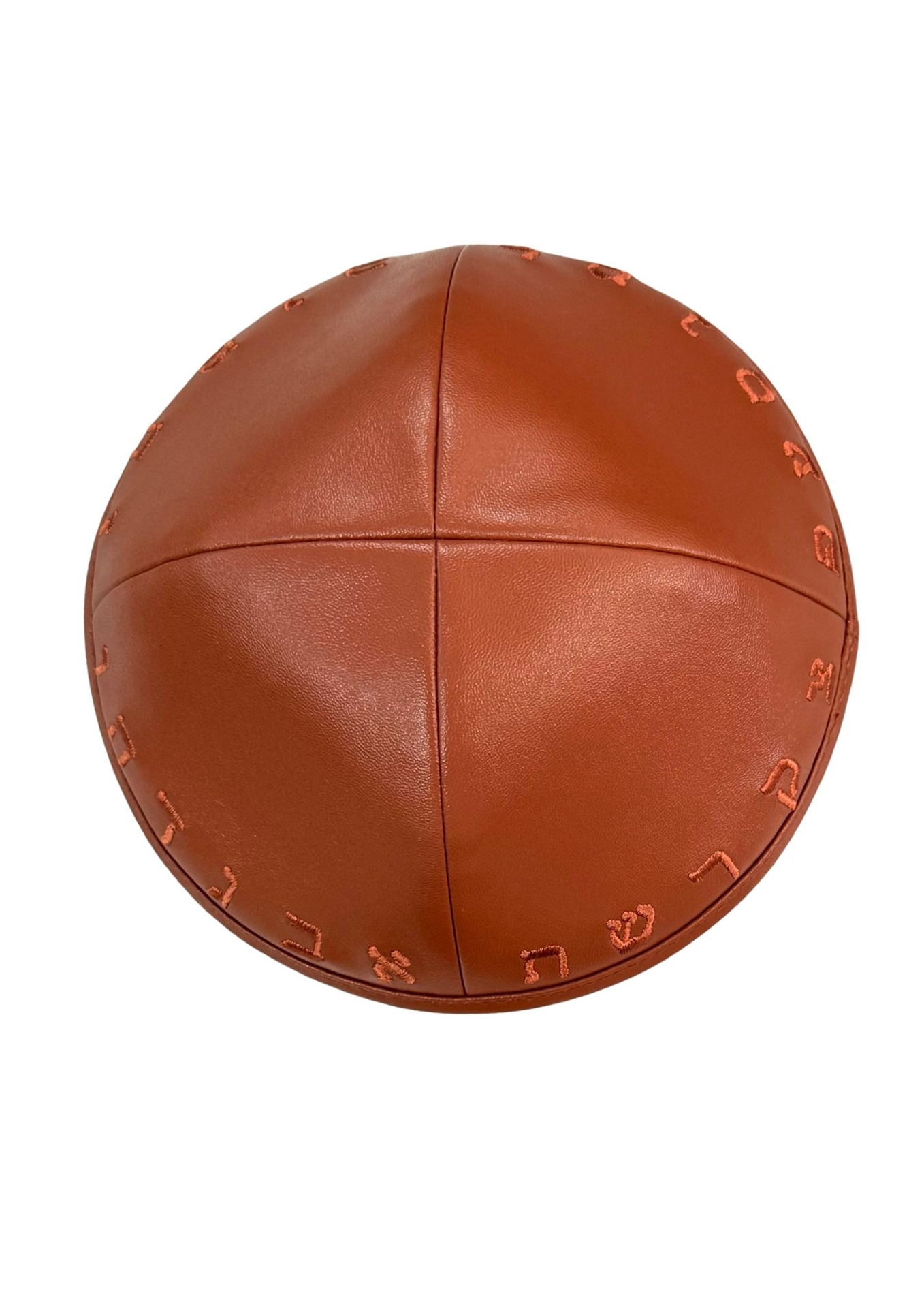 כיפת יודאיקה דמוי עור רקמת אותיות א-ב חום