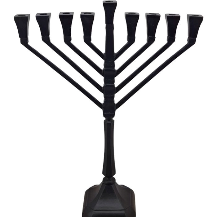 החנוכייה מגיעה בגימור שחור מט אלגנטי, עם קנים אלכסוניים בסגנון חב״ד, המקנים לה מראה מסורתי אך עדכני ויוקרתי.