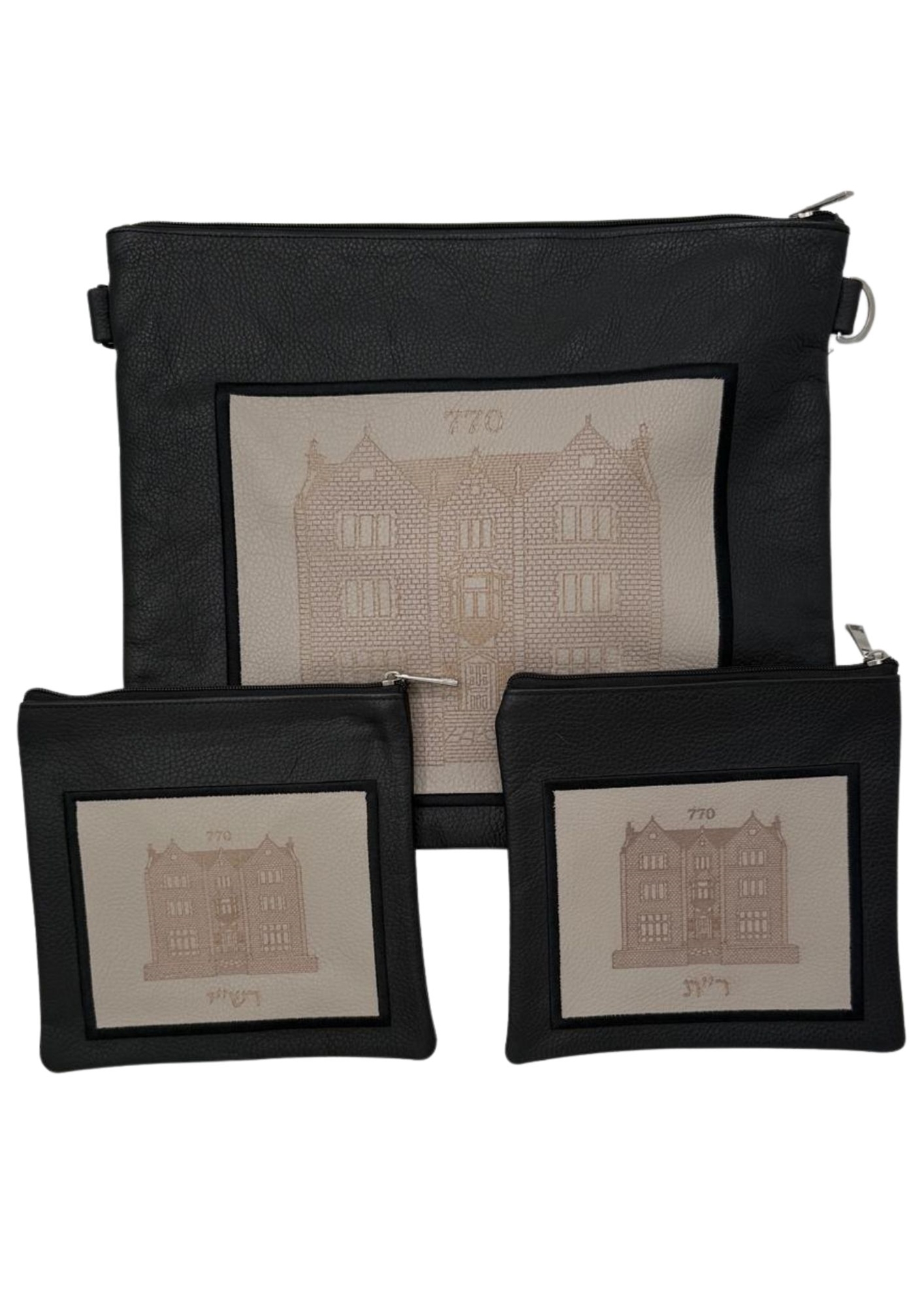סט לחתן מעור איכותי ומשובח עבודת יד. הסט כולל: שני תיקים לתפילין תיק גדול לטלית רצועת נשיאה ריקמת שם על שלושת התיקים (ללא תוספת תשלום).