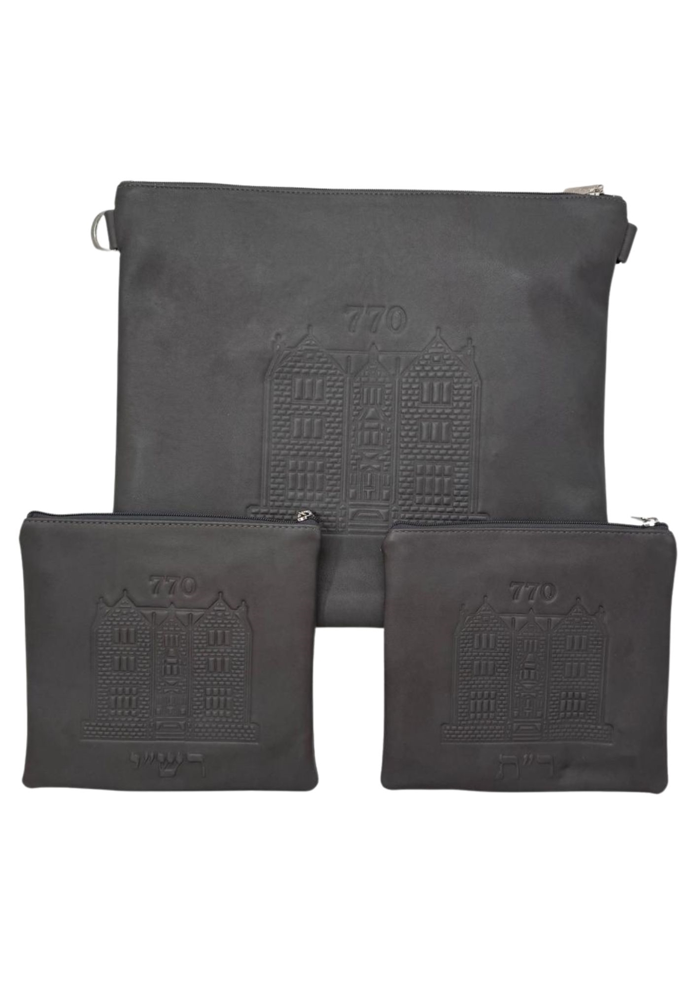 סט לחתן מעור איכותי ומשובח עבודת יד. הסט כולל: שני תיקים לתפילין תיק גדול לטלית רצועת נשיאה ריקמת שם על שלושת התיקים (ללא תוספת תשלום).