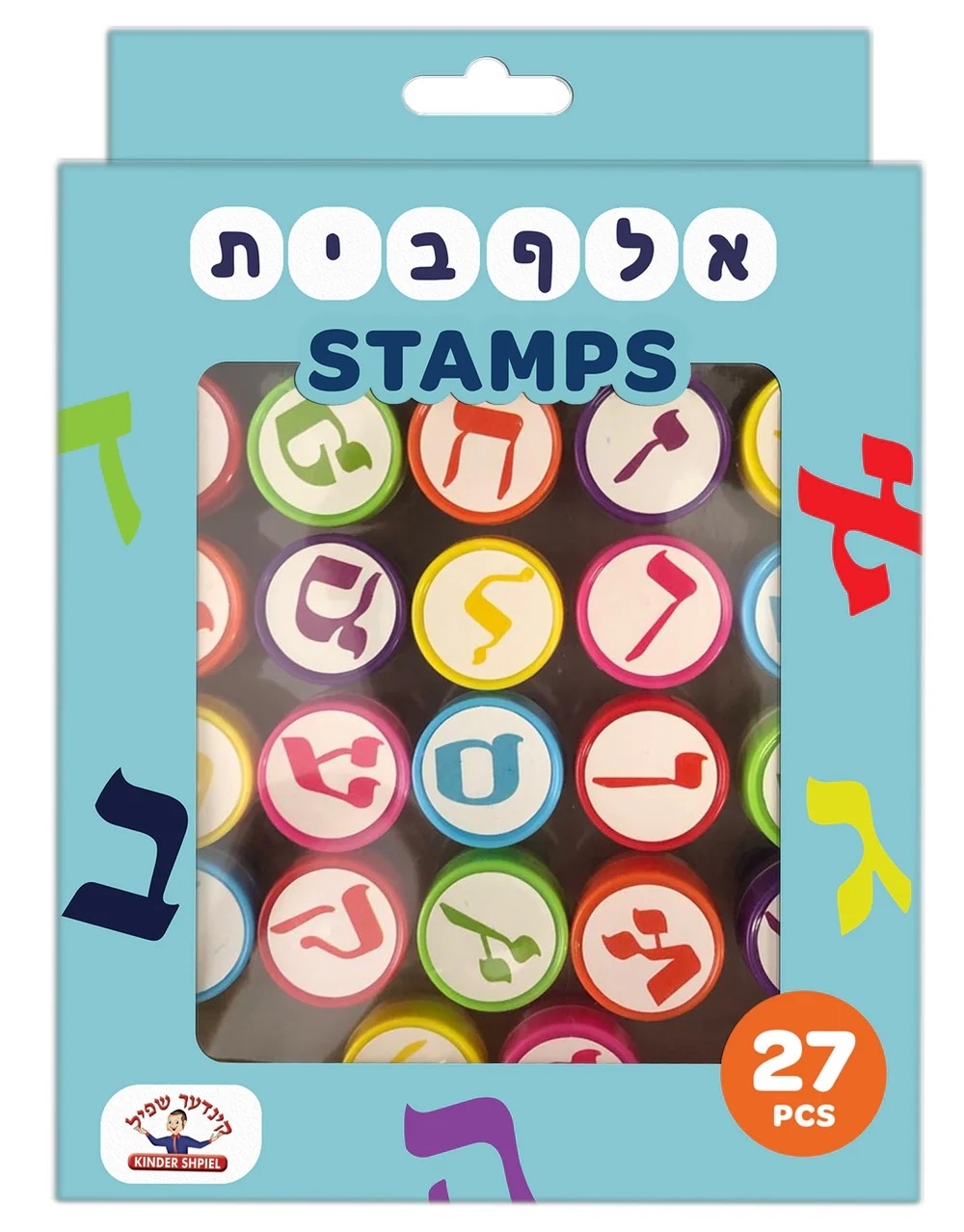 This colorful Alef-Bet stamp set includes all 27 Hebrew letters (including final forms) – perfect for learning, crafts, and Jewish-themed educational play.
