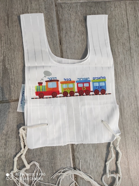 טלית קטן לילדים בגיל 3 עם ציור של רכבת