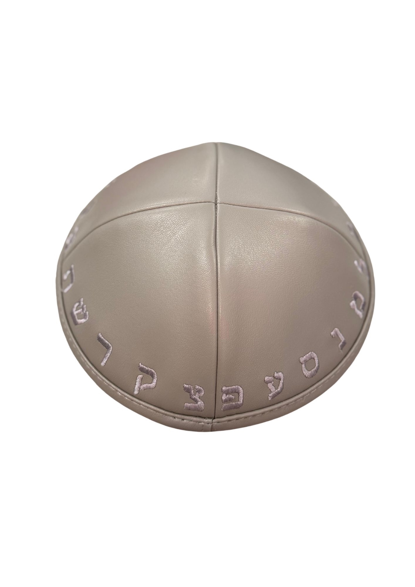כיפת יודאיקה דמוי עור רקמת אותיות א-ב אפור