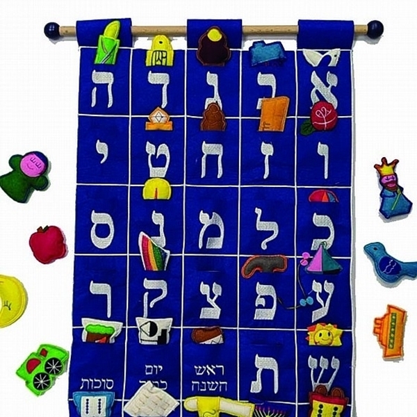 לוח עם רקמת האותיות עם כיסים, לכל אותר כיס ובה מצורף מוצר רך ונעים השייך לאות לימוד אותיות בצורה נעימה וקלה