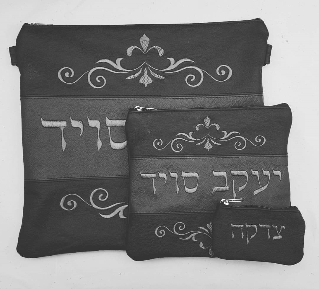 סט לטלית ותפילין מעור איכותי ומשובח עבודת יד. הסט כולל: *תיק לתפילין *תיק לטלית *רצועת נשיאה *תיק אישי לצדקה. *ריקמת שם על שני התיקים (ללא תוספת תשלום).