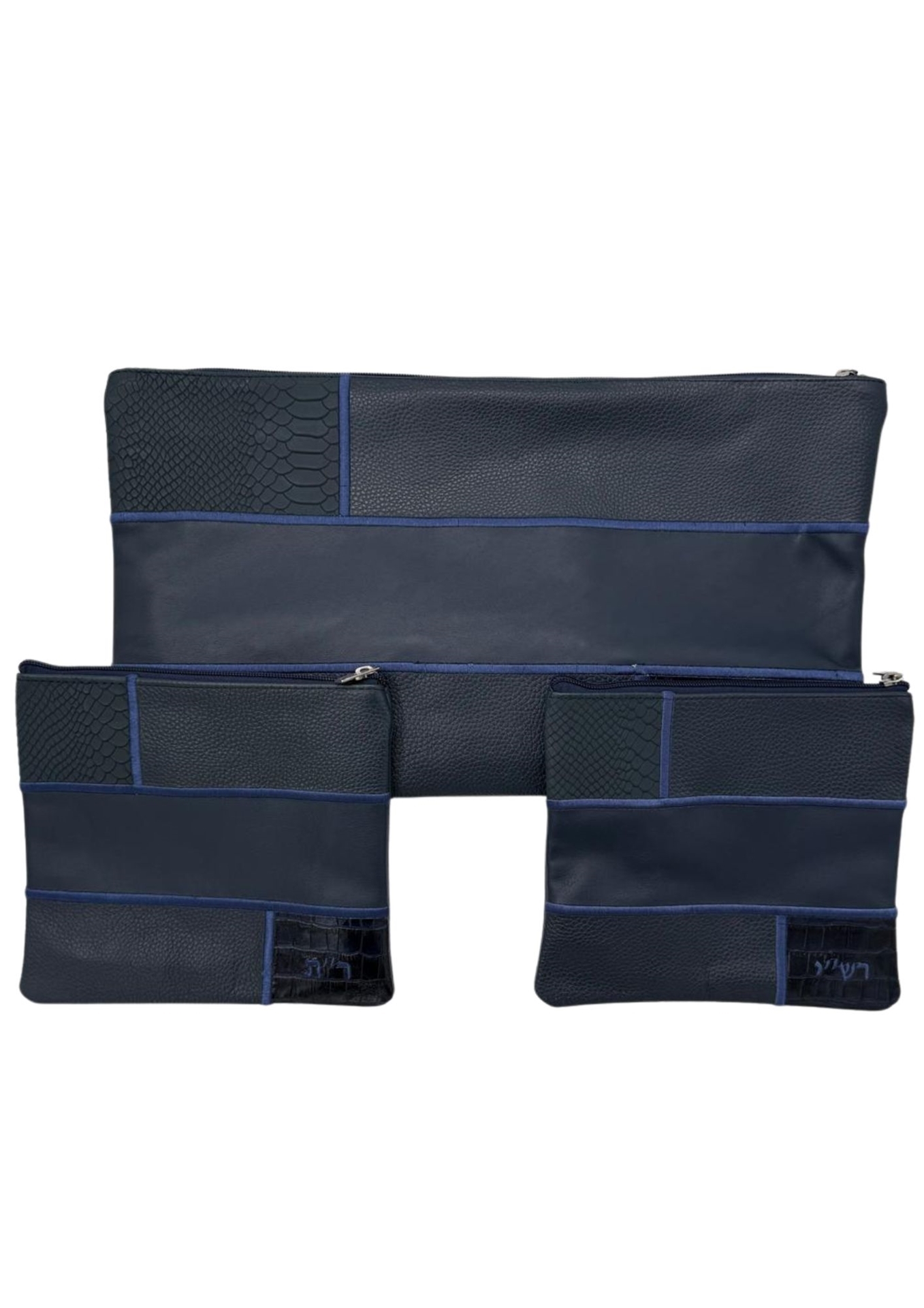 סט בר מצווה מעור איכותי ומשובח. הסט כולל: שני תיקי תפילין תיק גדול רצועת נשיאה רקמת שם על שלושת התיקים (ללא תוספת תשלום).