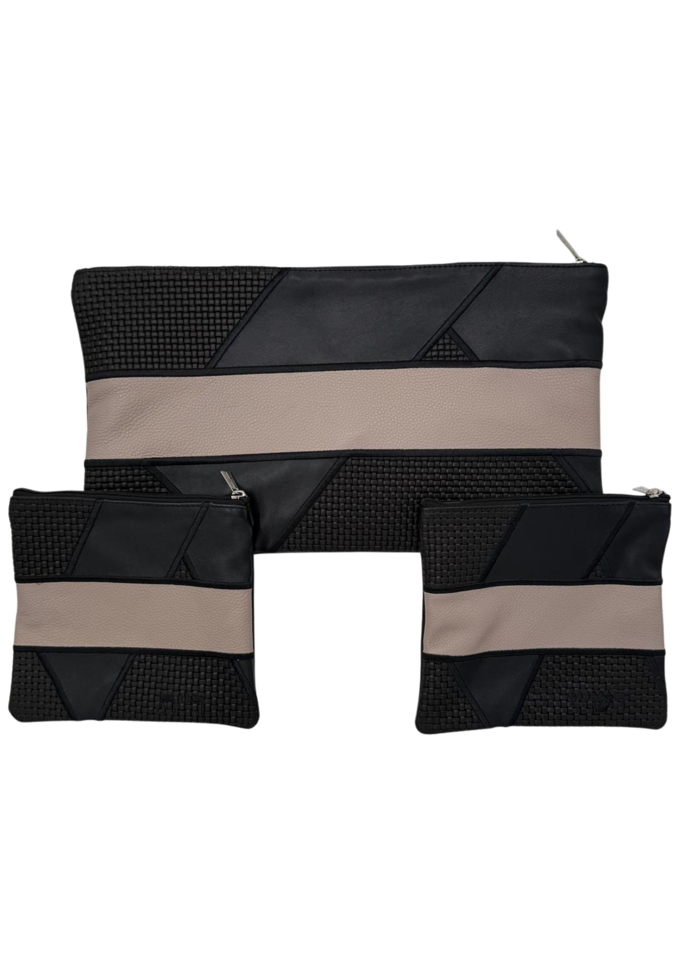 סט בר מצווה מעור איכותי ומשובח. הסט כולל: שני תיקי תפילין תיק גדול רצועת נשיאה רקמת שם על שלושת התיקים (ללא תוספת תשלום).