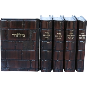 מחזור חב״ד בינוני לראש השנה ויום כיפור – הוצאה חדשה עם הנהגות וכולל תהילים, בכריכת עור אמיתי בעיצוב דגם הכותל.