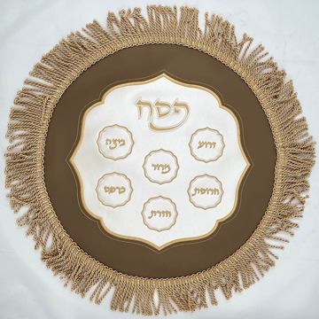 קערת הסדר כמנהג חב״ד כיסוי מצות מעור - יוקרה ומסורת בשולחן הסדר כולל ניילון קשיח לשמירה